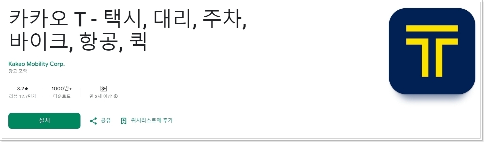 - 카카오 T 앱 선택 후 설치