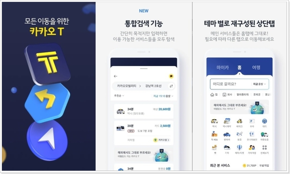 - “카카오택시 앱” 또는 “카카오 T” 검색